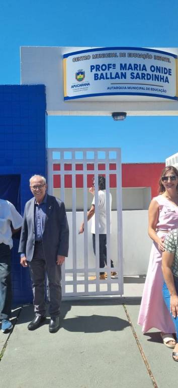 No dia 7 de fevereiro, o Residencial Sanche dos Santos, em Apucarana - PR, recebeu a inauguração de um novo Centro Municipal de Educação Infantil (CMEI), que passa a levar o nome de Professora Maria Onide Ballan Sardinha. A obra foi finalizada na gestão do prefeito Rodolfo Mota e contou com a presença da família, companheiros do Rotary Club de Apucarana, da Secretaria Municipal de Educação e da imprensa local.